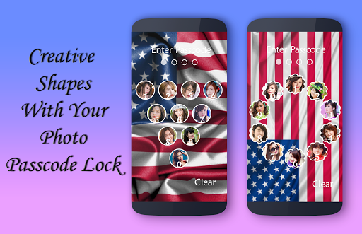 in this app you also set your name with your photo. usa flag DIY Lock Screen is application to protect your smartphone through using pin/passcode or pattern, no one can enter into your phone without correct four digit password or current pattern.