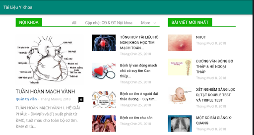 Ứng dụng cung cấp tài liệu cho nhiều chuyên ngành y khoa như: