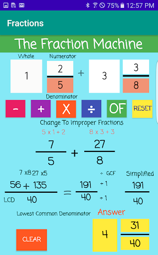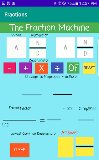 The Fraction Machine ( , -, x , ÷, of and simplifies the answer).