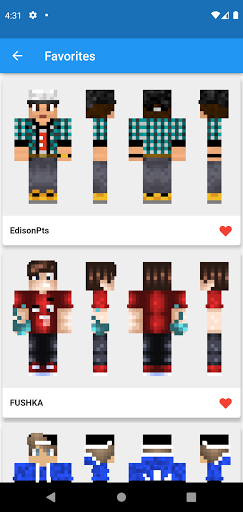 ยินดีต้อนรับสู่แอปพลิเคชันสกินของเด็กชายสำหรับ Minecraft แอพนี้ที่คุณสามารถดาวน์โหลดสกินสำหรับ Minecraft ได้ฟรี คุณกำลังมองหาสกินเด็กชายที่เย็นสบายหรือไม่? ตอนนี้คุณสามารถเลือก Minecraft Skins จากคอลเล็กชันของเรา เรามีสกิน 64x64, 64x32 และ 128x128 แอปพลิเคชั่นนี้มีสกินที่มีชื่อเสียงมากมายสำหรับหนัง Minecraft Boy Skins