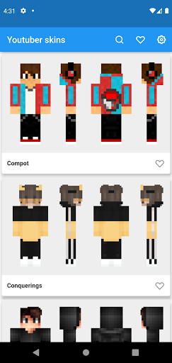 นี่คือหนังบางส่วนสำหรับเด็กผู้ชาย: การ์ตูน, PVP, Minecraft Skins 64x32 กับแว่นตาที่มีเสื้อคลุม, สยองขวัญ, น่าขนลุก, เป็นที่นิยม, YouTubers, Minecraft Skins 64x64, Superhero, HD สกิน, อะนิเมะ, Herobrine, Hacker อำพรางสกิน 128x128 สำหรับ Minecraft และอื่น ๆ อีกมากมาย คุณสมบัติของ Boys Skins App: