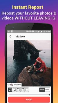 Repost Instagram photo or video in one click directly from post. You can give credit or remove watermark FREE.