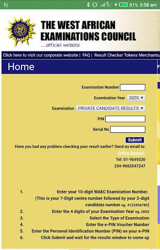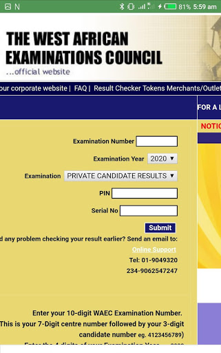 คำอธิบายของ Waec Result Checker