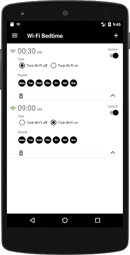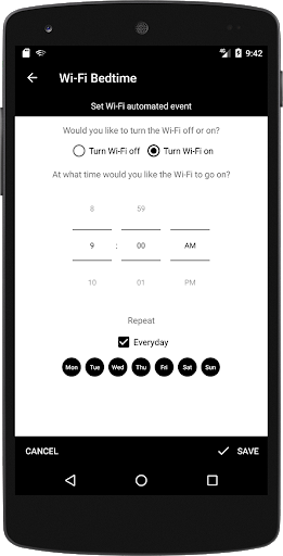 Wi-Fi Bedtime is a small utility that allows you to schedule when your device's Wi-Fi will be on or off.