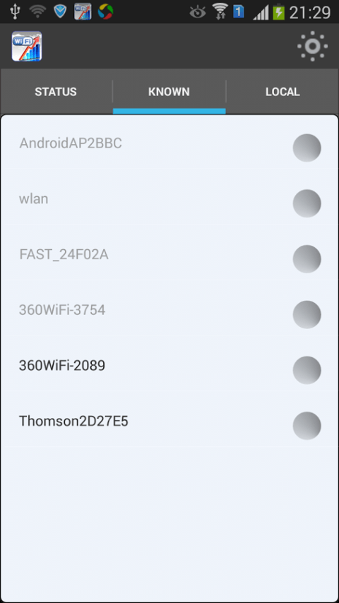 4. manage wifi, such as: close/open wifi, disconnect / connect wifi signal and add the known wifi information.