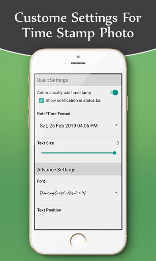 Settings here you can done by your preferences, you can change font, time-stamp position, photo name, change it easily.