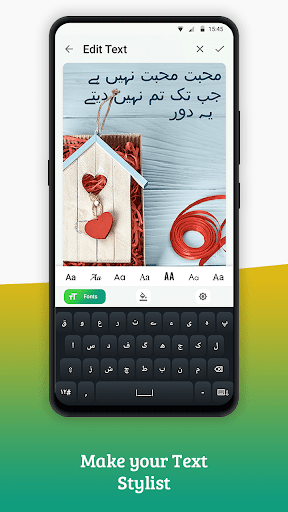 •คีย์บอร์ดภาษาอูรดู•เลือกภาพถ่ายจากแกลเลอรี่หรือกล้อง