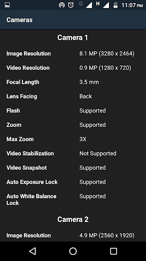 : เครื่องมือวินิจฉัยสำหรับฮาร์ดแวร์กล้องของคุณรายงานข้อมูลเกี่ยวกับความละเอียดของภาพเลนส์ความยาวโฟกัสและคุณสมบัติกล้องอื่น ๆ