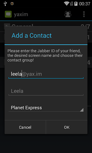 คำอธิบายของ yaxim - XMPP/Jabber client
