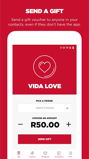 - ตอนนี้แฟน ๆ ของ vida สามารถแบ่งปันความรักได้โดยการซื้อในแอปสำหรับบัตรกำนัล vida มูลค่า R50 โดยเพิ่มครั้งละ R25 คุณสามารถแชร์บัตรกำนัลเหล่านี้กับเพื่อน ๆ ได้อย่างง่ายดายซึ่งจะสามารถแลกมูลค่าเต็มของบัตรกำนัลได้ที่ร้าน vida ที่ร่วมรายการใกล้ที่สุด