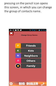 with an option of defining 4 more groups of contacts that you can open quickly.