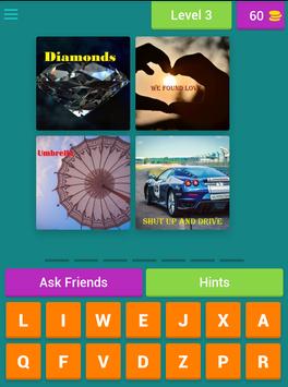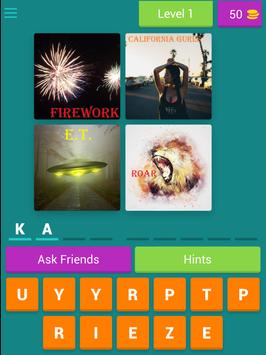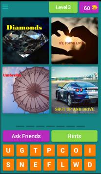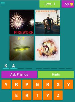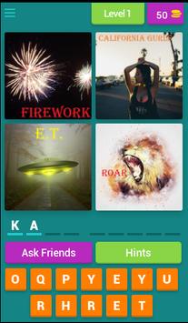 HOW IT WORKS Each level has 4 pictures. On each picture there's a song title written on them. The pictures go with the song titles. 4 Songs 1 Singer Trivia is updated DAILY