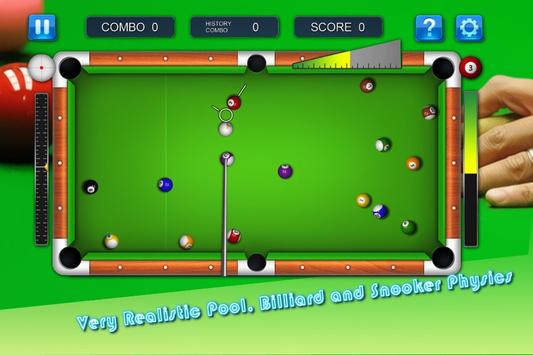 you can Play against the computer AI with standard eight 8 ball rules or 9 ball rules . Touch the screen to adjust the direction and drag down the power-up in the RIGHT to strike.