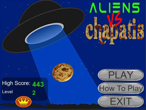 พวกเขาบุกโลกและพยายามที่จะเข้ายึดครอง!พวกเขามาพร้อมกับเทคโนโลยีที่เหนือกว่าของพวกเขาที่สามารถทำให้ยุ่งเหยิงกับแรงโน้มถ่วงได้ แต่มนุษย์จะไม่ยอมแพ้ง่ายๆและนั่นคือเมื่อมนุษย์ต่างดาวคิดค้นแผนชั่วที่สุดที่เคย ... เพื่อทำลาย chapatis ทั้งหมด !!!โอ้ลองนึกภาพโลกที่ไม่มีการโอบกอดแสนอร่อยของพวกเขา!นั่นเป็นเหตุผลที่พวกเขาต้องหยุดที่ค่าใช้จ่ายทั้งหมดนั่นคือสิ่งที่คุณเข้ามาภารกิจของคุณคือการทำให้ Chapatis ใหญ่และผลักดันมนุษย์ต่างดาวกลับไปที่ที่พวกเขามาจากคุณมีความท้าทายหรือไม่?ดำน้ำในและมาดูกันเถอะ