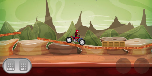 แต่ละระดับจะมีส่วนร่วมในการแข่งขันที่ไม่เหมือนใครในการแข่งขัน ฮีโร่สไปเดอร์ต้องสร้างสมดุลจักรยานของเขาระวังหินและเส้นโค้งกระโดดข้ามหลุมและความท้าทายอื่น ๆ ที่จะเผชิญหน้ากับเกมที่น่าตื่นเต้นนี้