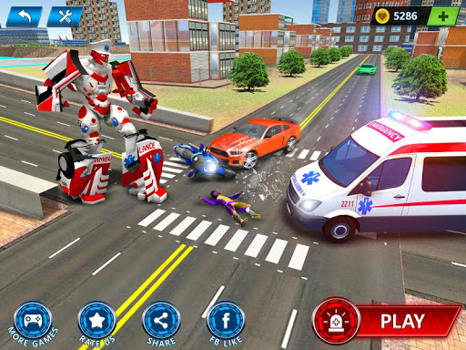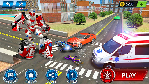 คุณพร้อมที่จะปฏิบัติหน้าที่ของคุณในฐานะนักขับรถพยาบาลเพื่อช่วยชีวิตผู้บาดเจ็บหรือไม่? ถ้าใช่แล้วยินดีต้อนรับสู่เกมหุ่นยนต์ช่วยเหลือรถพยาบาลใหม่ที่คุณสามารถเปลี่ยนหุ่นยนต์หมอบินเข้าสู่รถพยาบาลฉุกเฉิน เปิดไซเรนและขับรถไปรอบ ๆ เมืองเพื่อไปยังที่เกิดเหตุตรงเวลา เป็นผู้ช่วยให้รอดชีวิตและได้รับบาดเจ็บต่อแพทย์!