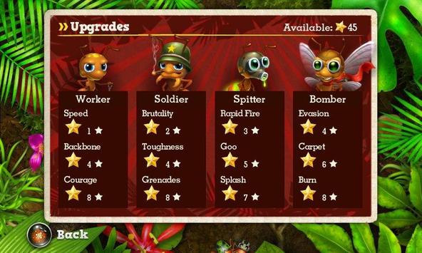 Your mission is to protect the hill as wave upon wave of enemy bugs are thrown at you with tower defence gameplay. Slay a bug carry out air raids upgrade your troops with four types of ants to deploy: workers, soldiers, spitters and drones.