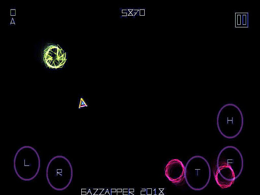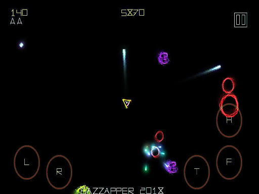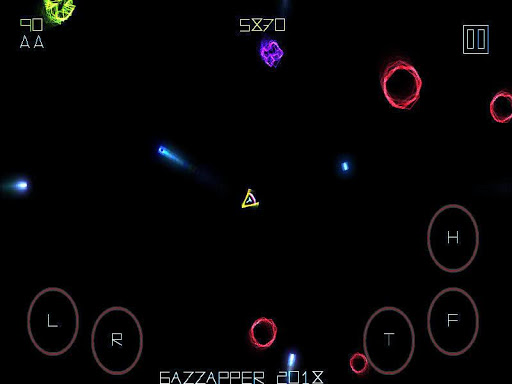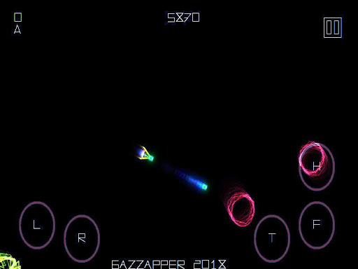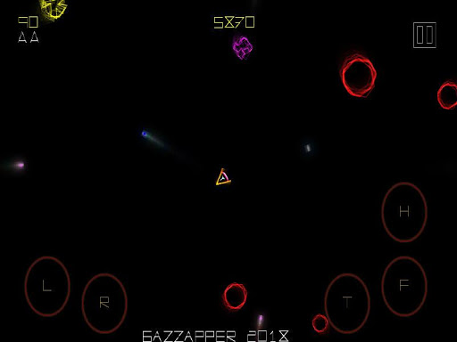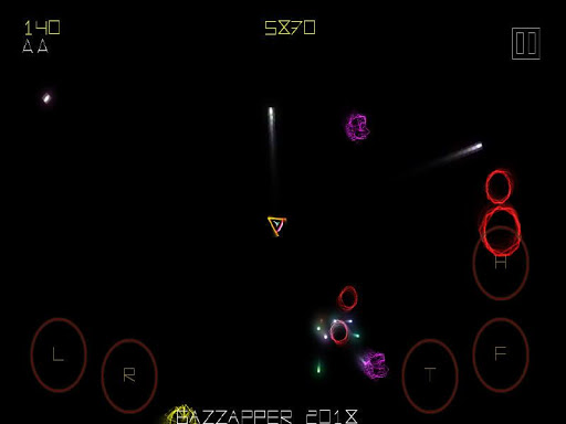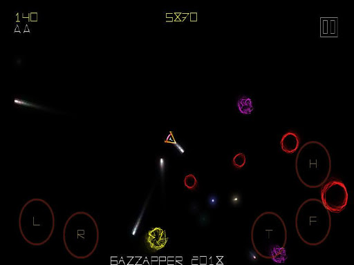 Button panel : T = Thrust, F= Fire, L = Left, R = Right, H = Hyperspace (teleport)