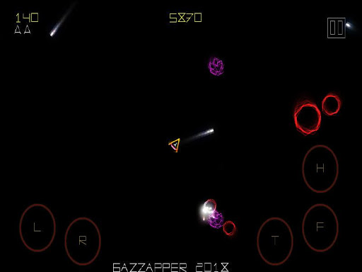 Stunning Asteroids in full color HD (High Definition) in this classic arcade asteroid vector display space shooter. Bright retro neon graphics.