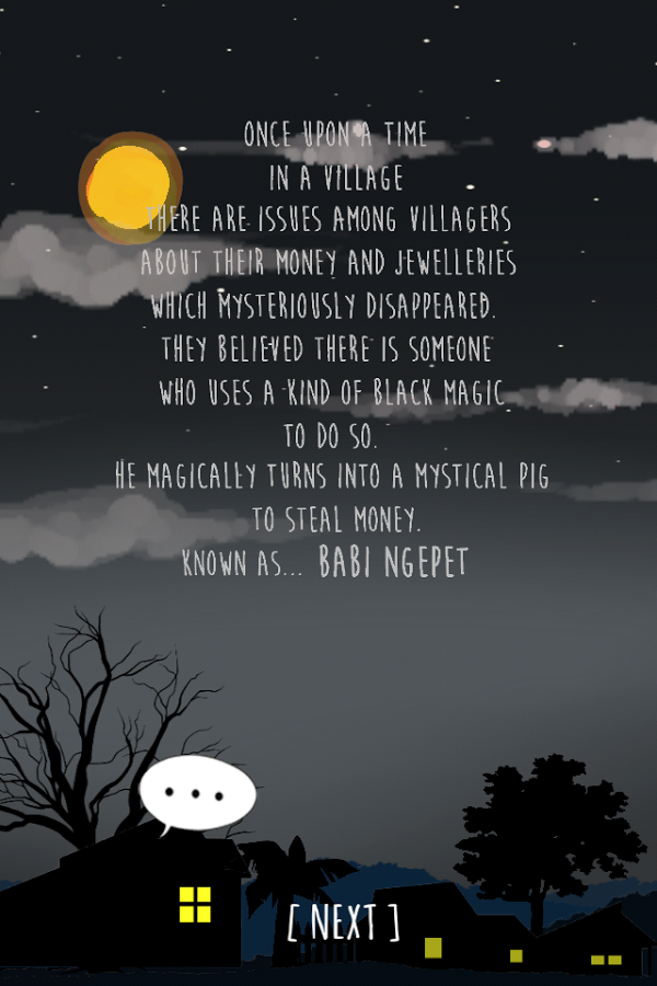 The person that practices Babi Ngepet black magic needs assistance from another person. In this game you act as the assistant whose task is to stay home and guard the lit candle, while the Babi Ngepet is in action. Because of this belief, the villagers often chase or even kill any pig wandering around the village at night.