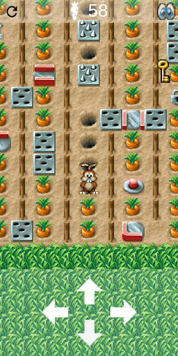 Твоя задача помочь оголодавшему кролику собрать всю морковь, которая разбросана по 30 игровым уровням. И всё бы ничего, да уровни эти снизу до верху напичканы различными ловушками. Попадёшь хотя бы в одну из них и станешь обедом для охотника.