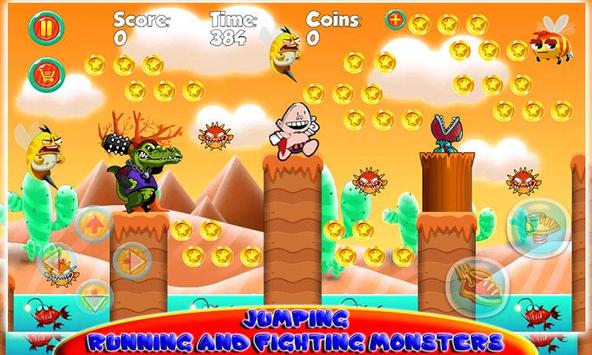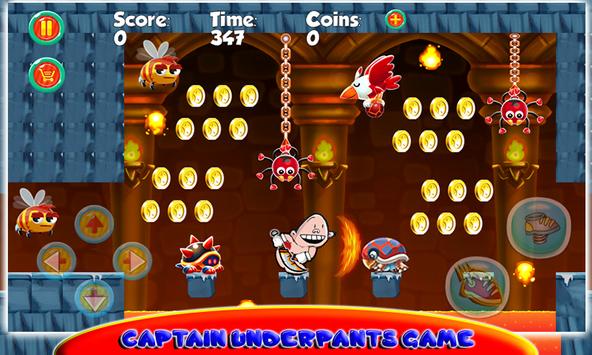 Captain Hero Underpants : Fly Adventure is a classic platform game with your Superhero mrkrupp a journey of Captain under that brings your childhood back. This classic game will make you addict to... suitable for all ages, especially for kids. playing with your favorite Superhero Captain Underpants in this Fly Adventure. The World of Captain under is in trouble after the boss Super Pants has invades it and kidnapped mr Krupp's friend. well, Superhero ride the red underpants and go Fly fast to save mr Krupp's friend.