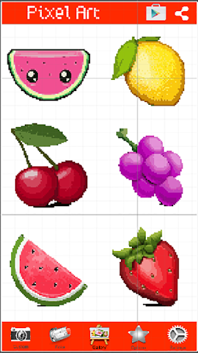 การเรียนรู้และระบายสีสีผลไม้พิกเซลสีเกมตามหมายเลขเชอร์รี่สตรอเบอร์รี่กล้วยแอปเปิ้ลและอื่น ๆ | เลือกจากผลไม้ผลไม้ 100 และเริ่มสีตามจำนวนระบายสีแต่ละพิกเซลด้วยสีที่ถูกต้องตามจำนวนขณะเรียนรู้สีและตัวเลขแบ่งปันงานศิลปะสำเร็จรูปกับเพื่อนของคุณหรือแม้แต่สร้างระดับศิลปะพิกเซลของคุณเอง