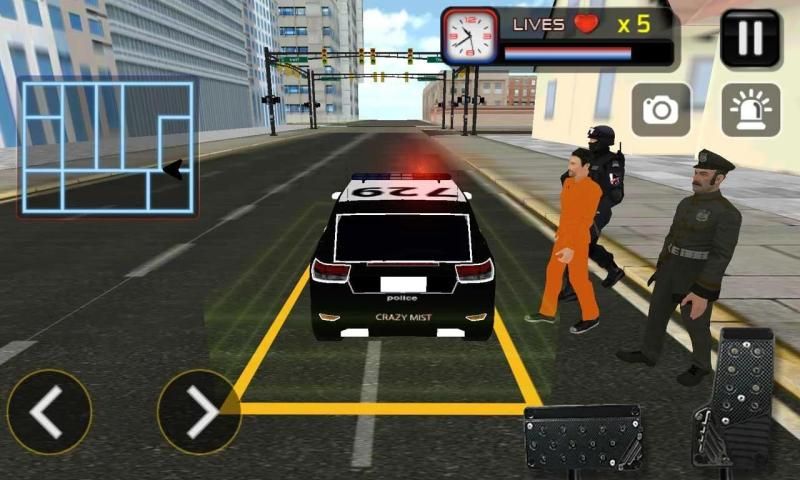 Cop parking game is designed with giving the player a role to play as the driver of this cop car, Your job will be to park your police car at the parking bay that will be located at one point of the city and you will have to get the prisoner in the car and get him transported over to the prison or jail, the second parking bay is located inside the prison gates once you drive in you will see it highlighted in yellow