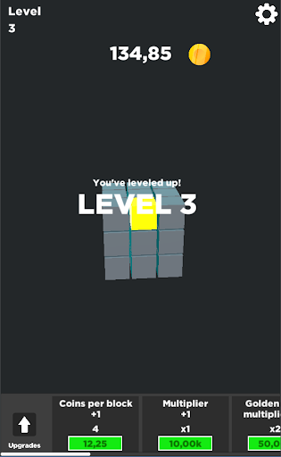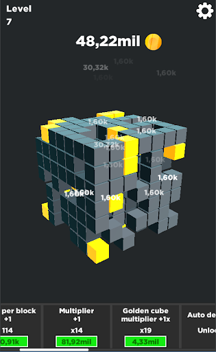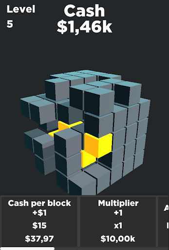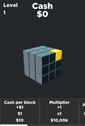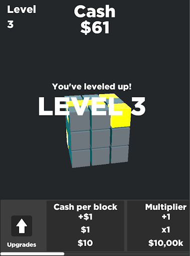 ทำลายลูกบาศก์เพื่อรับเหรียญซื้อการอัพเกรดเพื่อรับเหรียญมากขึ้นทำลายลูกบาศก์มากขึ้นและปรับระดับได้เร็วขึ้น