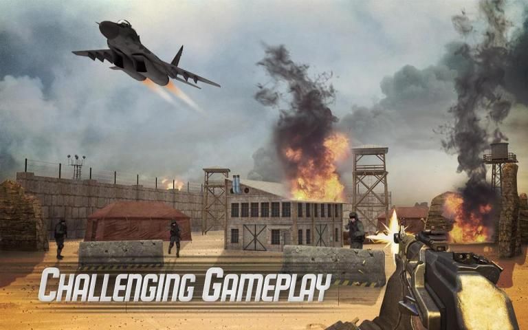 Desert Force Strike Hour encompasses missions across the desert to bring you explosive first person shooter action. Get incharge of an assault commando who takes hold of modern weaponry to destroy the enemy who has invaded the lands. You will be faced by elite soldiers, airplanes that fire smart missiles to destroy you! You will initiate counter attack with shotgun, assault rifle, pistol, rocket launchers and grenades to clear a path to victory! What are you waiting for soldier? Glory is the reward!