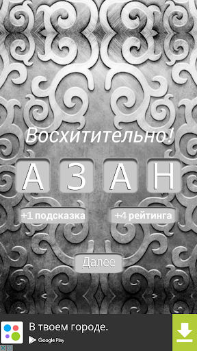 เกมเกี่ยวกับความรู้เกี่ยวกับพจนานุกรมอิสลามจากชุดแอปพลิเคชันอิสลามเกมคุณต้องย้ายตัวอักษรลงในสี่เหลี่ยมและทำคำคำพูดต่าง ๆ ในหัวข้อของศาสนาอิสลามสำหรับแต่ละคำที่พับได้อย่างถูกต้องคะแนนจะถูกสะสมสำหรับสามคะแนนคำแนะนำหนึ่งคำใบ้หากเป็นการยากที่จะเข้าใจว่าคำที่ถูกลืมคุณสามารถใช้พรอมต์และเปิดตัวอักษรหรือคำทั้งหมด