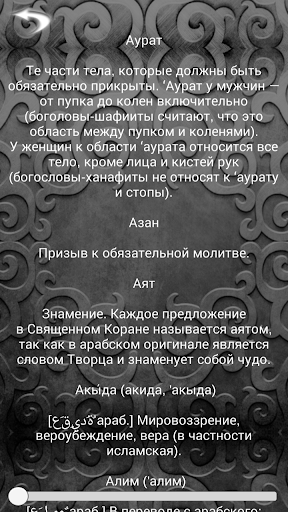 คุณสามารถดูในแท็บพิเศษของพจนานุกรมอิสลามเองทุกคำที่อยู่ในงานที่มีคำอธิบาย