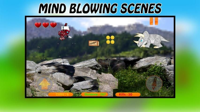 At the start of Dino hunter : Robot you have given three life, get coins shield and arsenals to kills more and more Dino, go as long as you can and then go to store buy life, shield, sniper and other weapons from there. Your robot is like a stick man, play with them and get fun.