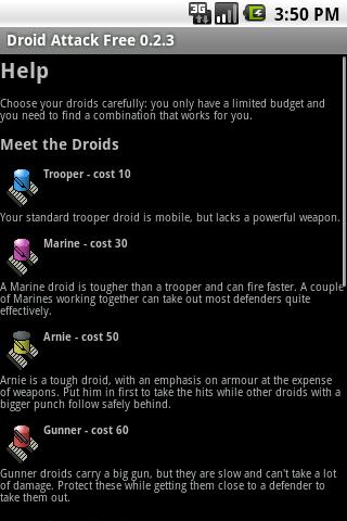 Use your droids to destroy the defenders in a retake of the classic tower defender type games.This free app features eight missions, each of which can be played at four levels of difficulty.