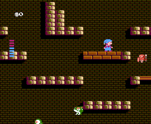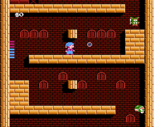 Each room the castle contains many enemies and hidden items. Ellen's bubbles are both a tool and a weapon; throwing bubbles at soft blocks causes them to break apart and either create additional routes, reveal hidden shops, or expose specific items. The bubbles can also destroy the demons that inhabit the given rooms, though they will come back to life after several seconds.