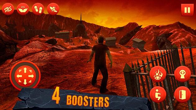 Enjoy the hellish levels of the macabre neighborhood of underworld full of cruel monsters in horror escape game. Roam about the cemetery with charred trees with ugly copses. Wander around the abandoned township with lots of ramshackle houses. Cave with dark labyrinths and infernal flames is an evil residence. Fight with mobs in this dirty and eerie place. Avoid the meeting with the disgusting boss! The giant boss that is the ugliest servant of the devil will cause a real fear of the scary game!