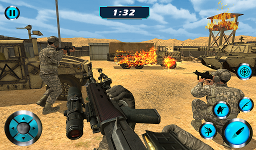 Have you ever played fps counter terrorist shooting mission game? Battleground shooting game scenarios will make enemies difficult in cross fire shooting attack deadly mission, when you have upgraded skills in survival shooting mission to accomplish the survival battleground with best gun, rifles and snipers simulation. Play FPS modern shooting sniper game at front line battlefield. Ultimate challenging battle arena and cross firing enemies, you have to show your world war commando training skills and fight against the free firing forces of enemies. In this modern gun shooting battle, you will face combat missions.