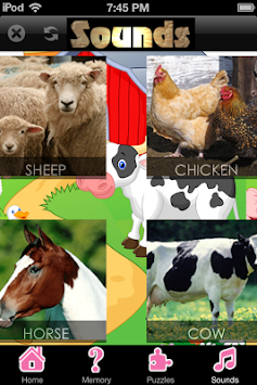but adults too - puzzle games. We also throw in 2 flip card memory games to keep your kids entertained for hours and even some adults. As well, we have 6 clickable farm animal sounds for your kids to learn. Teach them and ask them the different sounds a farm animal makes.