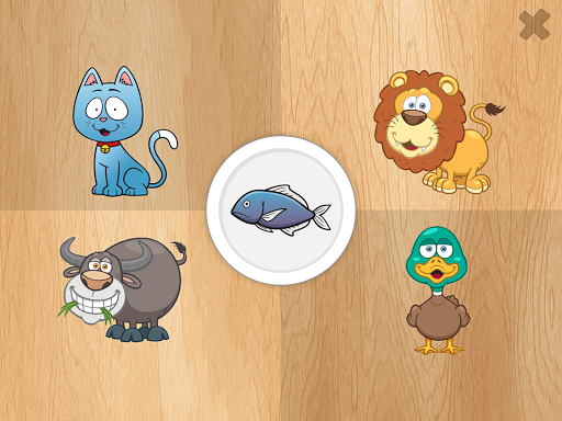 This is a fun, educational learning game for toddlers. Little boys and girls will define which creature should eat this or that baby food. So, they just drag and drop it to feed dog [like doggy games], cow, shark or tiger!