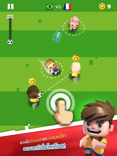 การควบคุมแบบแตะสัมผัสครั้งเดียวที่สนุกและเรียบง่ายให้คุณจ่าย ยิงบอล และทำคะแนน ได้เพียงแค่แตะเท่านั้น นี่คือเกมกีฬาฟุตบอลอาร์เคดที่ทุกคนในโลกสามารถท้าทายคนทั้งโลกและขึ้นเป็นแชมเปี้ยนได้ ไม่ใช่แค่แฟนฟุตบอล! ที่จริงแล้วคุณสามารถสนุกหลุดโลกได้เลยเวลาท้าทายเพื่อน ๆ และทำประตูรวมขึ้นนำ