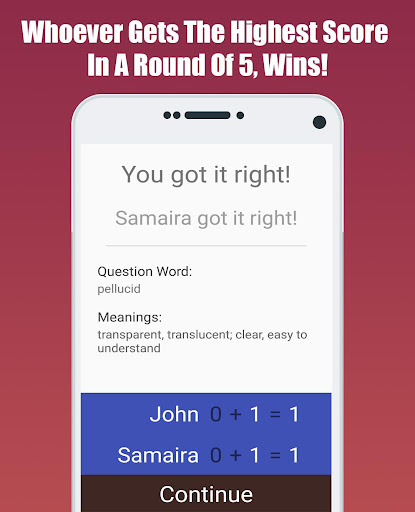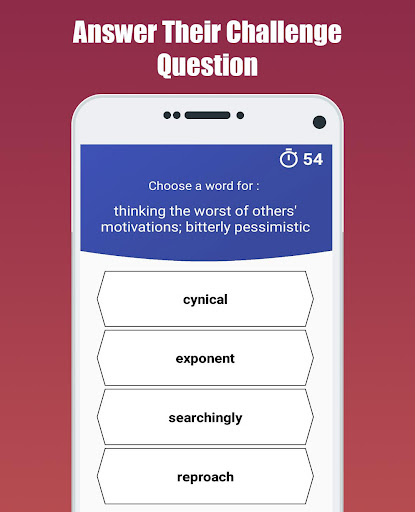 Two Player Vocabulary Quiz Game - challenge your opponent with a word and answer their challenge question, whoever gets the highest score in a round of 5, wins!