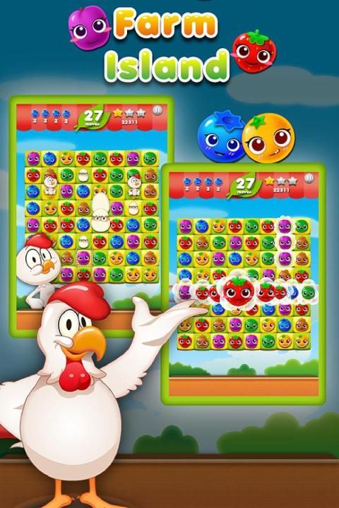 -Farm Island Mania easy to play: Switch the fruits to enjoy the game.