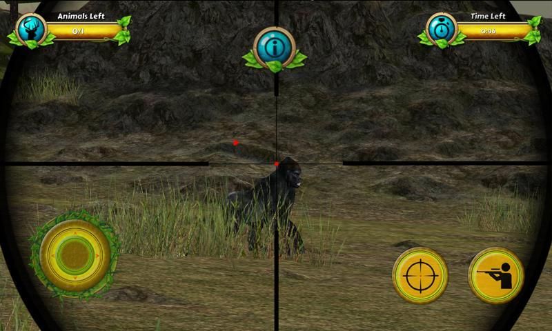 Become a part of this wonderful gorilla "hunting game". All you need to do is hunt down your pray using the sniper gun. You can use the zooming feature to have a clear "shot the gorilla". You can be the worlds best hunter by "kill the Gorilla" and become the greatest hunter ever known to the mankind. Look for the red triangle which helps you to find the location of the Gorilla.