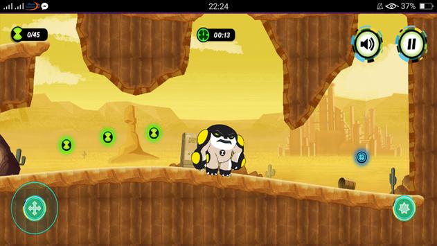 in Hero TIME Billy Billions has stolen the Rustbucket! Help Ben 10to use the power of Omnitrix to transform into various creatures and jump to the places you would not be able to otherwise. You need find a way to get as far as possible, collect enough energy and especially to manage to do it within limited time limit The game offers awesome graphics, simple controls and lots of fun.