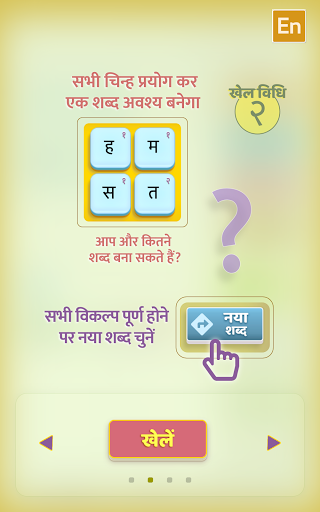 "เงินทุนจะถูกนำเสนอบนจดหมายปริมาณและพรมครึ่งตัวและสร้างคำที่ยากง่าย ๆ " ความช่วยเหลือด้านภาษา "แปลจากสัญลักษณ์และกฎทั้งหมดในภาษาอังกฤษทำให้คำพูด ทำคำชนะการสะกดคะแนนและเงินปันผล! ในเกมเกมให้ดีขึ้นโดยการท้าทายความสนุกของคำศัพท์ภาษาฮินดีของคุณหลังจากติดตั้งอินเทอร์เน็ตจะไม่จำเป็นต้องเล่น Funhell ™! "