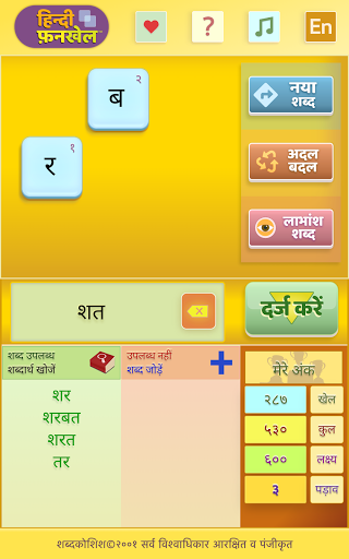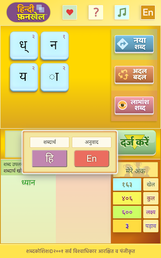 अंक एकत्र कर, अपने हिन्दी शब्दावली फ़न को चुनौती दें।