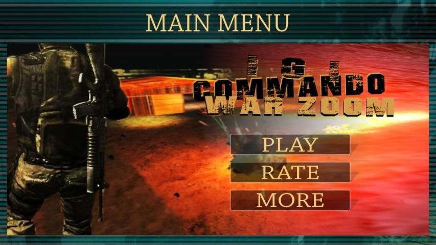 We Have introduce the new concept and new idea, and we hope user like this idea it consist single level but mission is so difficult to achieve it.They have different commando and multiple weapons.The aim is that kill the Bad enemies and pass the target.In future we add the more missions.user playing more type application like as Adventure,Zombie,Front,Cant,Babblo,Racing,Gunship and other types of app.but this application is more changeable for user.Have a HD Graphics and Efficient sound and music, and Good Looking environment.Player easily move left Right and Up down.