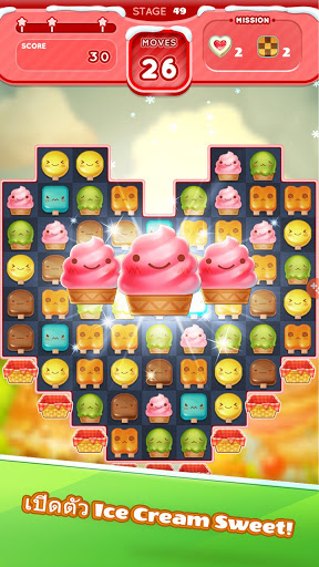 เรียงตัวต่อปริศนา 3 ตัวสีเดียวกัน และขยับไอศกรีมแสนหวานไปด้านหนึ่งเพื่อให้ภารกิจเสร็จสมบูรณ์