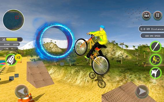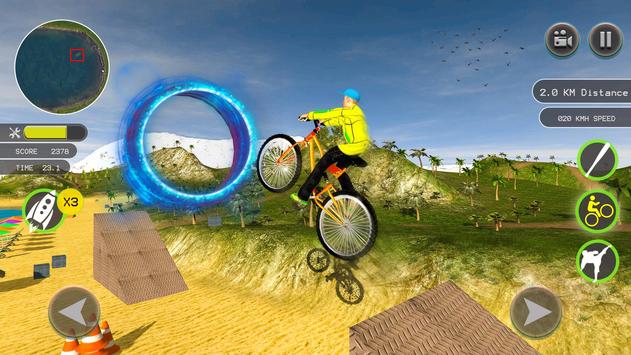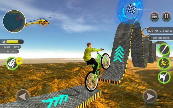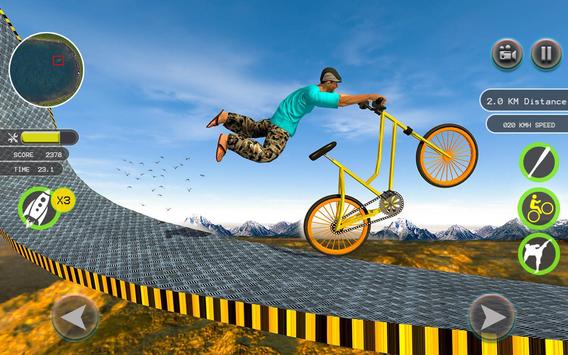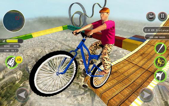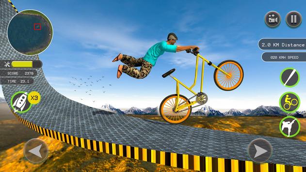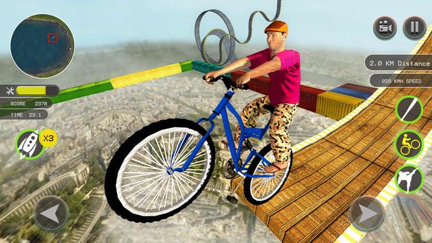 This extremely convincing bicycle rider game is packed with different levels. It’s time to superintend other racing games and enjoy this excellent sports bicycle rider racing in one of the modern next generation bicycle racing mania games. This is a new Simulation Cycle Game in which you will race bicycle across world's impossible tracks. Impossible tracks have narrow path than rooftop ride so only a pro BMX rider can make it to the end point without falling down from massive impossible heights of bicycle trails. The narrow tracks for bicycle riding are build upon hills and mountain. To master bicycle tricks on the zigzag roads you need to ride slow with accuracy. Ride your BMX bicycle fast over mighty ramps showing crazy stunt madness by riding through the sky and become ultimate death rider of big city. Be the king of bicycling by showing daredevil cyclist skills.As a stuntman rider show bmx racer skills on sky high ramps by paddling BMX cycle fast. While racing tricky MTB bike avoid falling down from sky heights.