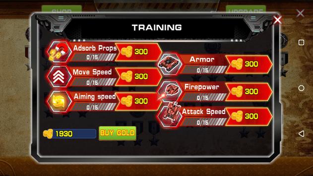 - 6 type upgrade tank system: Armor, Fire power, Attack speed, animing speed, Move speed, Adsorb props...